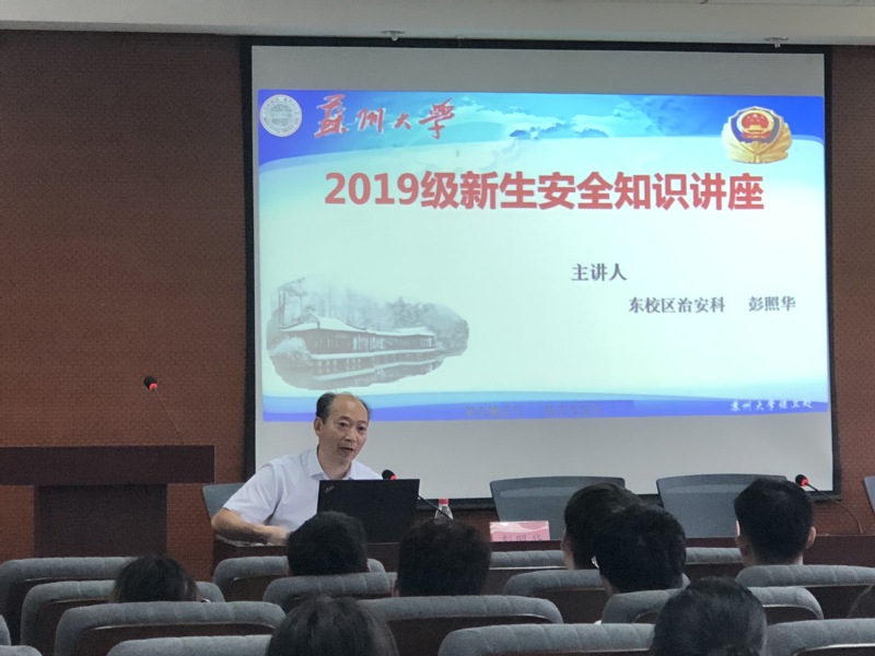 保卫处治安科彭照华科长,给新生进行了校园安全教育专题讲座。