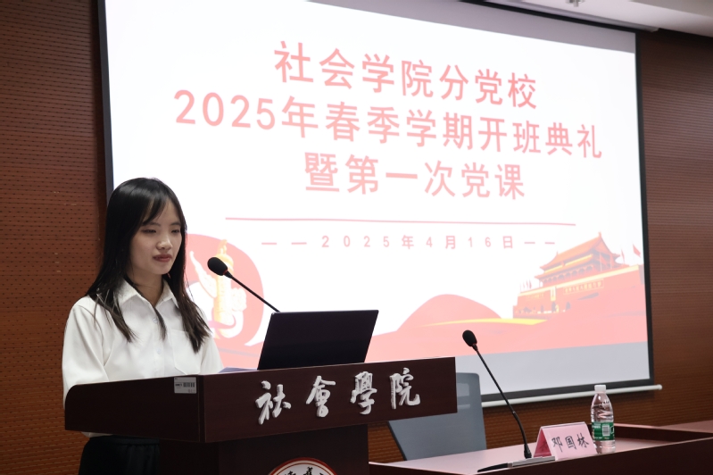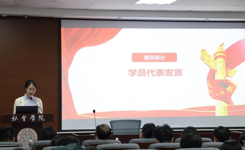 随后,学院分党校培训部负责人冯嘉如同学详细解读了本期培训班的培训计划及结业要求,并对党建书屋、“模拟两会”等常规活动、红色主题实践活动以及其他特色文化活动进行详细介绍。她强调,全体学员要严格遵守培训纪律,以端正的态度参与理论学习与社会实践,真正做到学有所思、学有所悟、悟有所行、行有所效。