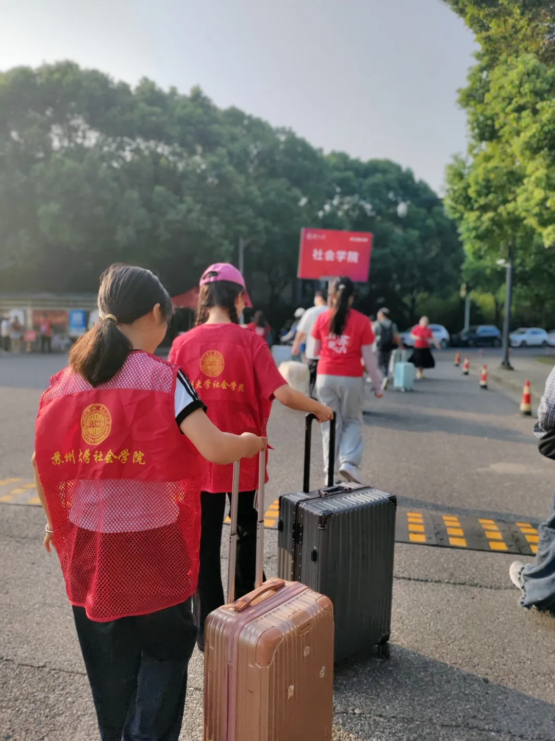 报到现场,从新生联络,到进校接待;从行李寄存,到报到指引;从搬运行李,到进入宿舍,学长学姐们的足迹遍布新生可能需要的所有地方,为开学报到现场增添了一份温暖与踏实。
