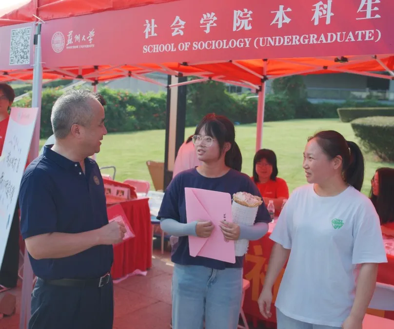 报到点的老师们和工作人员们耐心地为新生办理各种手续、核验信息、领取“新生大礼包”,里面有学院为新生精心准备的专属定制签字笔,印有学生姓名的钥匙扣,定制毛毡包等礼物。社院萌新们有序完成报到。