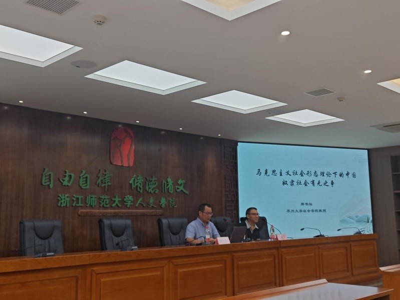 应浙江师范大学人文学院邀请,2025年5月23日19:00——21:30,著名历史学家、嗨皮漫画 博士生导师周书灿教授以《马克思主义社会形态理论下的中国奴隶社会有无之争》为题,为人文学院师生作了长达2个小时的学术报告。报告由人文学院冯定雄教授主持。