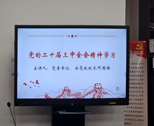 邓国林书记首先开展党的二十届三中全会精神专题辅导。邓书记围绕二十届三中全会公报四大要点及全文进行解读,特别是有关教育、科技、人才的重点内容。他指出,党的二十大报告首次将教育、科技、人才作为专章阐述并一体部署,明确到2035年建成教育强国、科技强国、人才强国。党的二十届三中全会进一步提出,“统筹推进教育科技人才体制机制一体改革,健全新型举国体制,提升国家创新体系整体效能”等内容,体现了国家对教育、科技、人才的重视。在新时代的发展征程中,教育对于提高人民综合素质、促进人的全面发展具有决定性意义。我国始终将教育放在优先发展的战略位置,深知教育的重要性在于培养时代新人,实现民族复兴的伟大梦想。邓书记强调,作为学生党员要以实际行动践行教育科技人才“三位一体”理念,努力提升专业素养,为科技进步贡献力量。