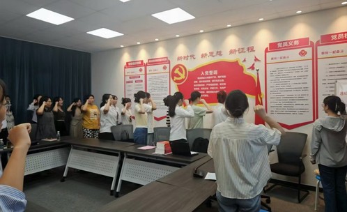 活动最后,全体新时代党员在何丙秋同学的带领下,重温入党誓词,对党组织庄严宣誓。党员不仅是一个身份,更是一种使命和责任,希望新生党员们坚守入党初心,以更加饱满的热情和更加坚定的信念投身学习和工作,以奋斗之楫在新征程上砥砺前行!