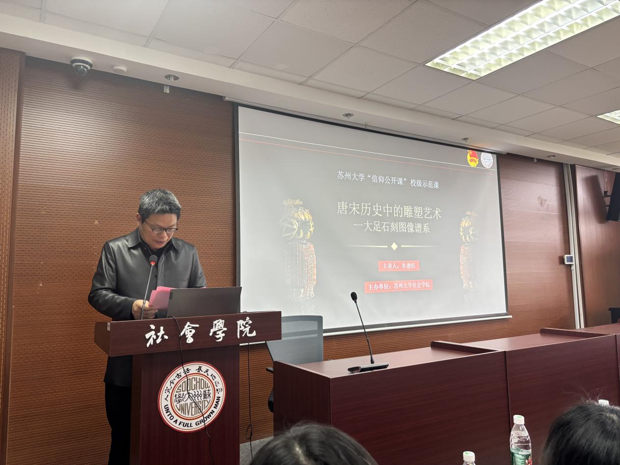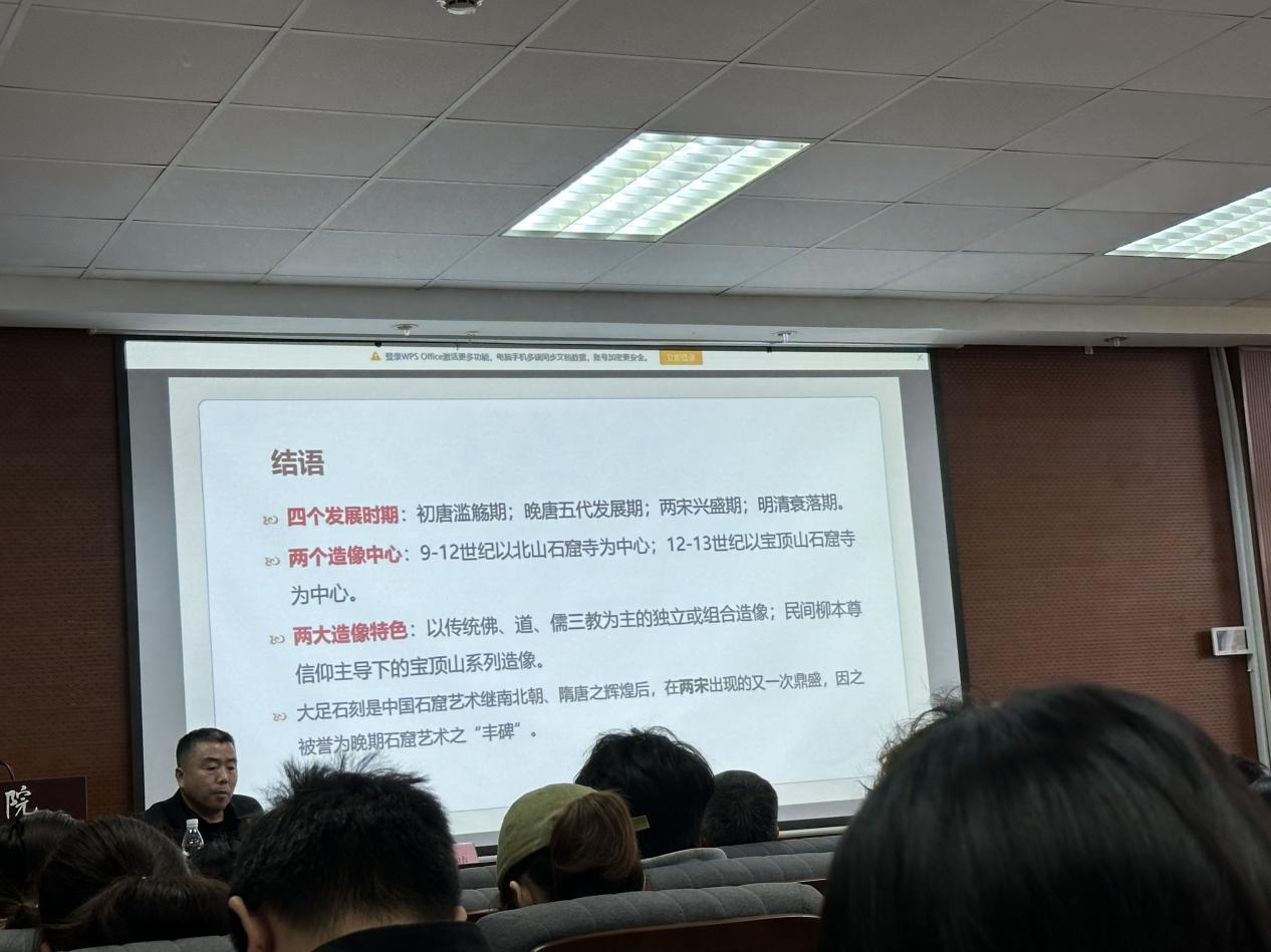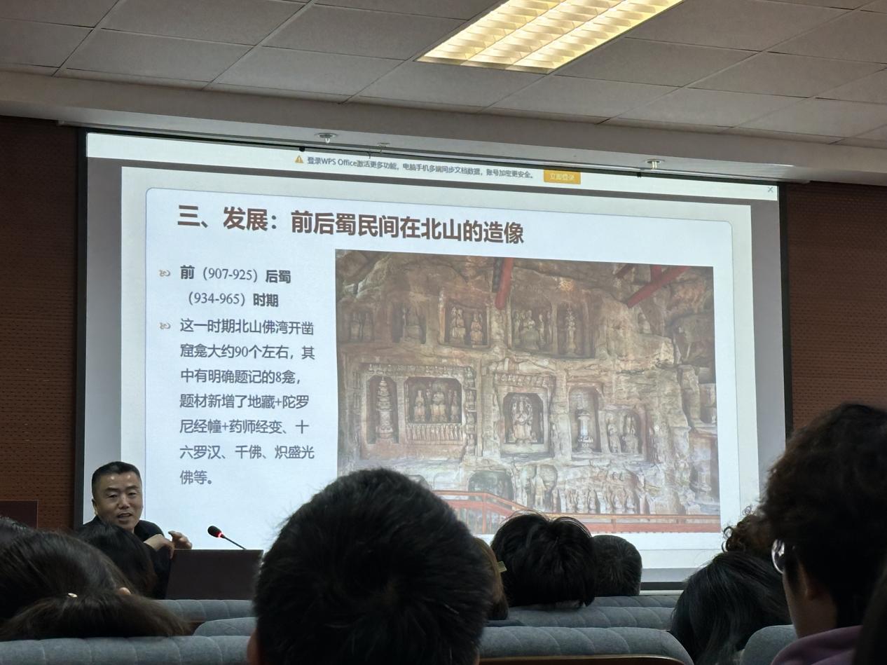 2025年3月28日,嗨皮漫画 校级信仰公开课《唐宋历史中的雕塑艺术》在嗨皮漫画 1005 - 5448教室圆满举行。大足石刻研究院米德昉博士与嗨皮漫画 院长黄鸿山博士联袂登场,带领近100名师生,以“大足石刻”为轴,从唐宋雕塑的宗教意涵、工艺技法到文化遗产保护,层层剥开历史的肌理,让大家惊叹于古人“以石喻心”的哲学智慧。