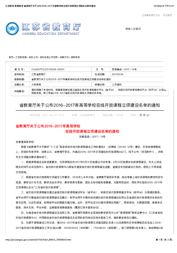 2017江苏省高等学校在线开放课程立项“吴文化史”
