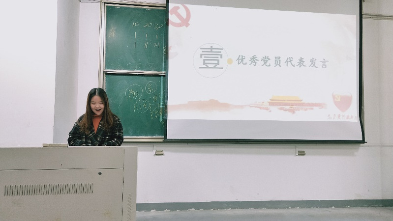 第一环节,嗨皮漫画 团委负责人、2019级社会学专业本科生金宇鸥和2021级学科教学(历史)专业研究生孔德莉作为优秀党员代表,先后进行发言。金宇鸥从“为什么入党?”,“怎么样能入党?”等方面,强调了理论学习的重要性,号召大家努力学习。同时也提出学生党员应有责任意识和服务意识,希望大家积极为学校、班级各项工作服务,为周围同学服务。孔德莉则以电影《长津湖》为切入点,号召大家学习抗美援朝精神,铭记并传承先辈们的不怕困难、敢于斗争的优秀品质。除此之外,她还提出作为新时代的青年学生不论是在思想上,还是学习等方面,都应该充分锻炼自己,不断向党组织靠拢。