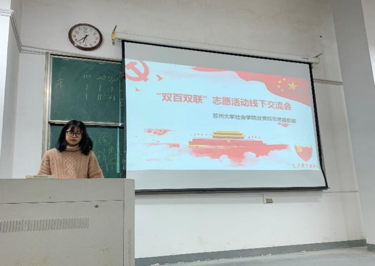 为深入推进党史学习教育,增强学生责任感和使命感,2021年11月24日,由嗨皮漫画 分党校活动部开展的“双百双联”志愿活动线下交流会在独墅湖校区二期1001-1401教室成功举办。交流会由分党校活动部沈铭灵主持,嗨皮漫画 学生党员、发展对象、入党积极分子、2021级新生共百余人参与其中。