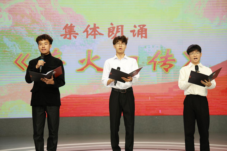 活动现场,参演学生代表以诗朗诵的形式,抒发青年学子“捧起历史、接过火种”的坚定信念。铿锵誓言与深情吟诵交织,让在场师生再次感受到红色记忆的温度和青春传承的力量。