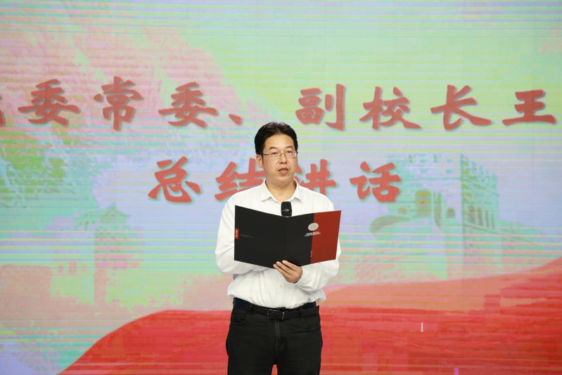 校党委常委、副校长王云杰在总结讲话中指出,抗战胜利的历史是中华民族不屈精神的生动见证,更是新时代理想信念教育的宝贵资源。他对广大师生提出三点希望:一是以信仰为旗,把准人生航向。要从抗战精神中汲取信仰力量,坚定理想追求,筑牢精神根基;二是以实干为笔,书写青春答卷。要将爱国情转化为奋斗行,立足岗位勇担使命,用实干诠释担当;三是以创新为帆,赋能时代发展。要敢闯敢试、锐意创新,争做时代发展的参与者、推动者。