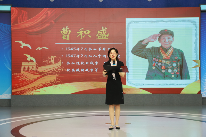 活动开篇,离退休党委书记陈彦艳详细介绍曹积盛老同志基本情况。全场通过三幕沉浸式话剧,走进95岁抗战老兵曹积盛的热血青春。从山东乡土间萌发的初心,到枪林弹雨中无畏的坚守,再到三尺讲台上默默的耕耘,话剧以细腻的叙事,生动还原了曹积盛用青春与热血书写的家国答卷。剧中,半块馒头承载的母子深情,泛黄家书传递的信仰火种,冰雪战壕里战友的嘱托与牺牲等细腻意象,串联起全局的情感脉络。从战场到校园,从战士到教师,曹积盛把战场上的坚韧与忠诚带到课堂,用伤疤讲述历史,用知识传递信仰,让“初心”二字在岁月沉淀中愈发厚重。