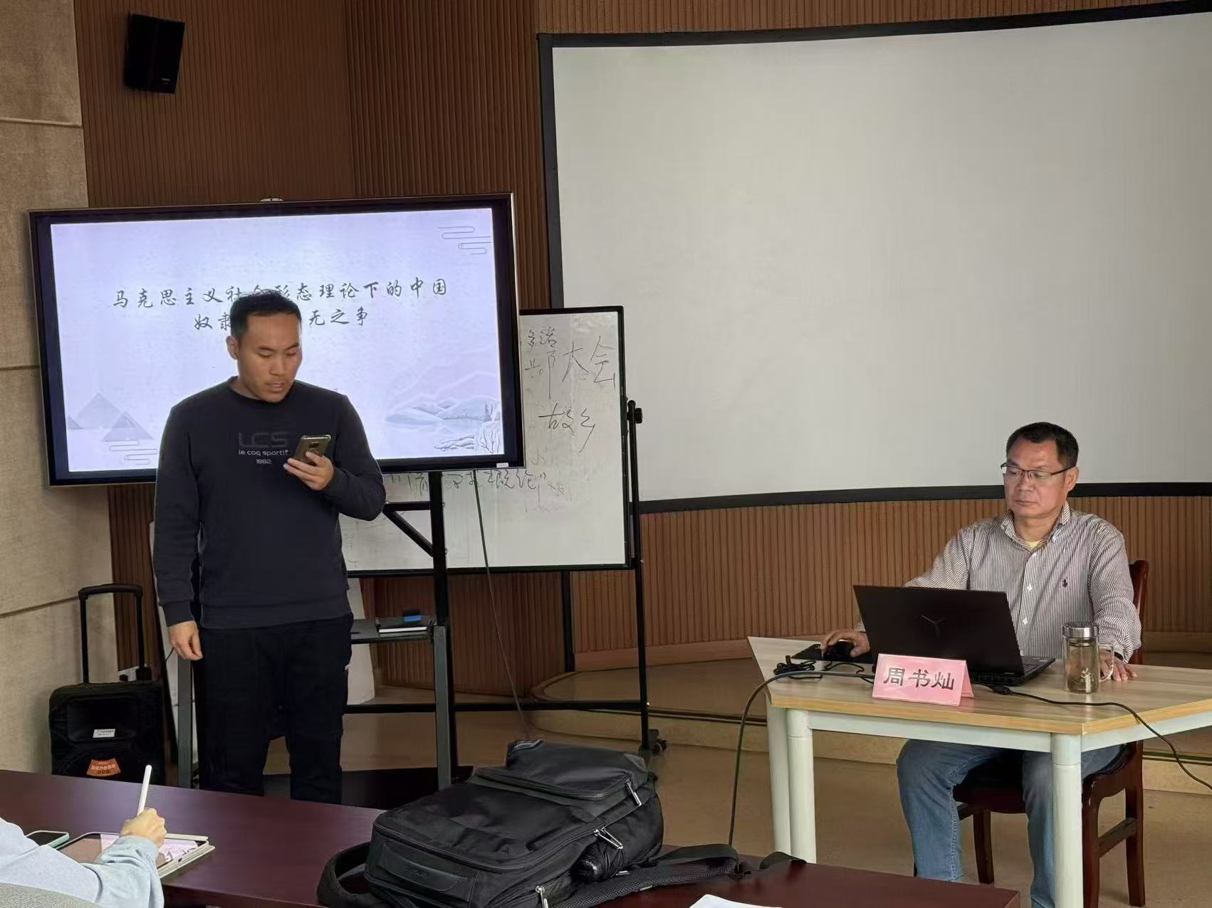 2024年11月13日下午13:30,国家级一流本科专业建设点历史专业系列讲座宁波大学人文与传媒学院“风华浙东大讲堂”第89讲,准时开讲。应宁波大学人文与传媒学院邀请,著名历史学家、嗨皮漫画 博士生导师周书灿教授以《马克思主义社会形态理论下的中国奴隶社会有无之争》为题,为人文与传媒学院师生作了一场精彩的学术报告。报告由宁波大学历史系主任张凯教授主持。