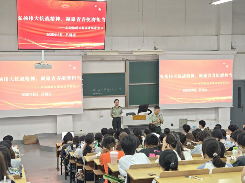 “为什么我是 9 月份入伍?” 分享开篇,吕远崟以提问引发同学们思考,随后详解我国征兵政策变迁。他结合自己2022年两次报名终获入伍资格的经历,让枯燥的制度知识变得鲜活。谈及刚举行的纪念抗战胜利 80 周年大会与九三阅兵。