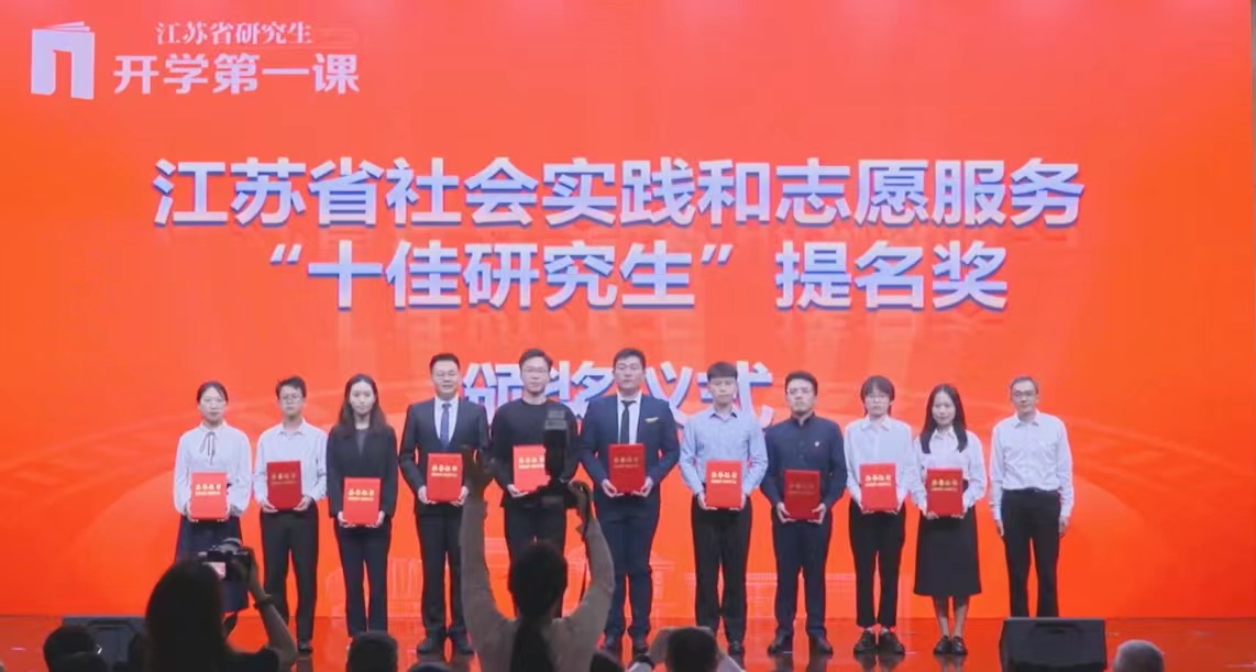 会上进行了第二届江苏省社会实践和志愿服务“十佳研究生”“十佳研究生团队”颁奖。嗨皮漫画 社会学专业熊元铱同学,荣获“十佳研究生”提名奖。