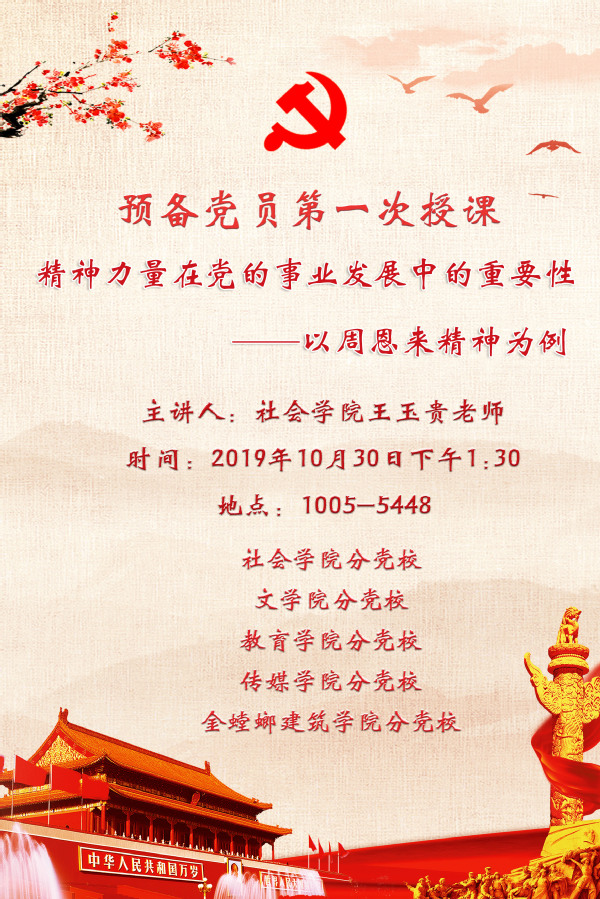 预告|嗨皮漫画 分党校、文学院分党校、教育学院分党校、传媒学院分党校、金螳螂建筑学院分党校2019年秋预备党员培训班第一次集中授课(海报)