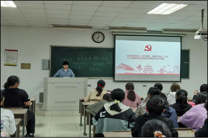 首先进行的是选择题轮流赛。各个党支部轮流作答,答题的同学们自信满满,即使遇到难题也没有队伍弃权不作答。在此环节第二党支部以一题的优势胜出。