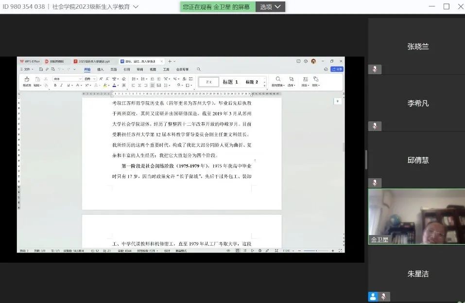 2023年9月13日上午九点,嗨皮漫画 2023级新生入学教育活动“目标、定位与路径:2023级新生入学漫谈”专题讲座成功举办,讲座由嗨皮漫画 退休教师金卫星教授主讲,全体2023级本科生、研究生参加了本次活动。