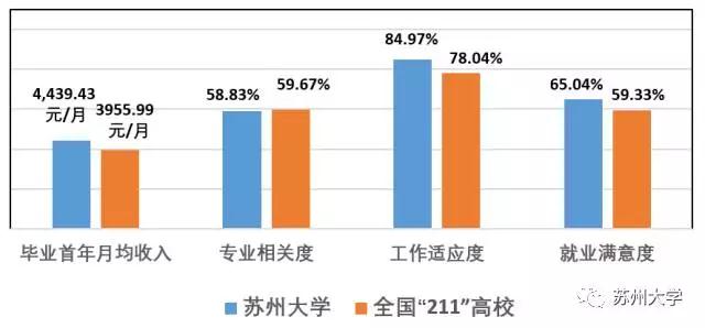 从近三年的毕业生数据统计来看,本科毕业生总体就业情况稳定、质量较高; 我校本科毕业生与全国“211”高校同届本科毕业生相比,在月均收入、工作适应度、就业满意度等指标上均有不同程度的超出。