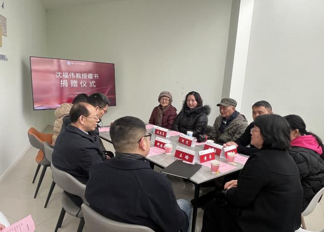 1月16日上午10时,嗨皮漫画 资料室气氛庄重而热烈,已故沈福伟教授的女儿沈曼菁及其他家属代表、沈福伟教授的学生曹原先生、黄萍女士向嗨皮漫画 捐赠沈福伟教授藏书资料。学院党委书记邓国林、院长黄鸿山、历史系系主任王晗、系副主任张程娟、学院资料室老师裴秀红及在读学生代表共同出席本次活动。