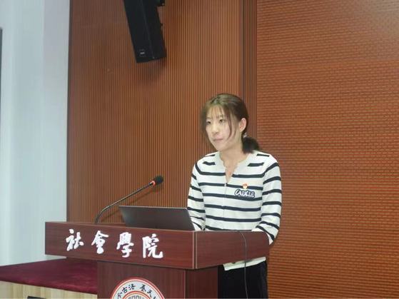 2020级历史学师范专业王孟婕同学作为发展对象培训班学员代表发言。她认为每一次党课都是一次学习新知识的过程,更是一次激发创造的过程,尤其是在阅读《习近平讲党史故事》一书时,被书中体现共产党员优良作风和艰苦奋斗精神的党史故事深深感染。这些故事激励着她不断向先辈们学习、向前辈看齐。此外,她还呼吁各位学员力学笃行、善学善用,将所学理论转化为丰硕的实践成果,不断创造新成就、夺取新突破。