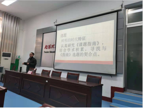 周书灿教授从事先秦史、考古学、历史地理学与中国学术史等多领域的研究,先后主持国家社科基金项目3项,参与国家社科基金首届重大招标项目、河北省哲学社会科学基金等重点项目。本期讲座,他以“如何申报基金项目”为主题,从国家社科基金项目的指导思想、选题、问题导向、创新意识、论证等五个方面全面解读了申报基金项目的具体做法和注意事项。周教授讲到,选题要有鲜明的时代特征,要认真研究《课题指南》,结合学术积累,寻找与《指南》选题的契合点,还就发现问题的方法进行了阐述。