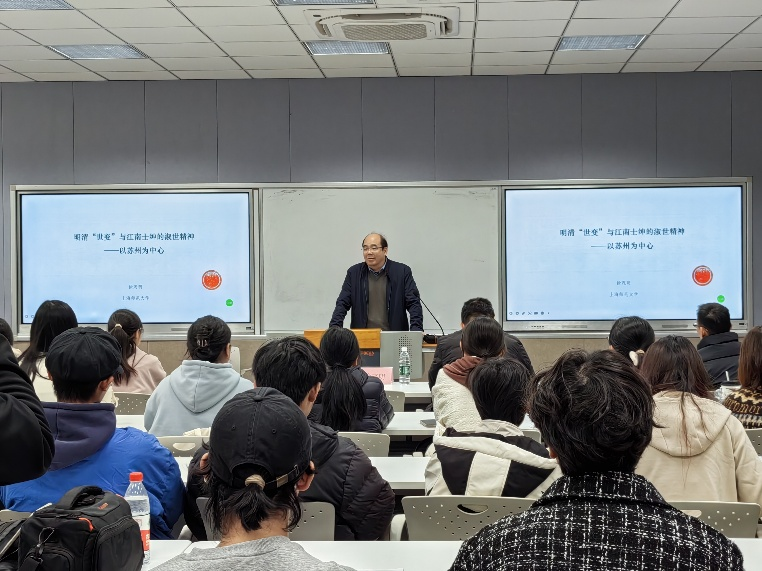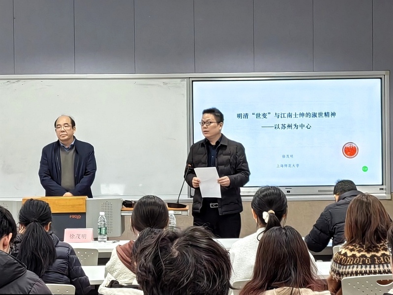2025年11月24日下午,“明清‘世变’与江南士绅的淑世精神——以苏州为中心”校级素养公开课在独墅湖校区文综楼1005-5433顺利开讲。由上海师范大学人文学院教授、历史系主任、中国近现代史博士点负责人徐茂明教授主讲,嗨皮漫画 院长黄鸿山教授主持。