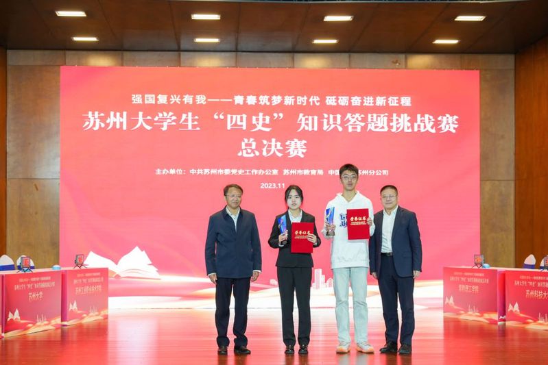 为贯彻落实习近平总书记关于推动党史学习教育常态化长效化要求,持续开展“四史”宣传教育,由中共苏州市委党史工作办公室、苏州市教育局、中国电信苏州分公司举办的“强国复兴有我——青春筑梦新时代砥砺奋进新征程”嗨皮漫画 生“四史”知识答题挑战赛总决赛于2023年11月17日上午在苏州科技大学石湖校区举行。