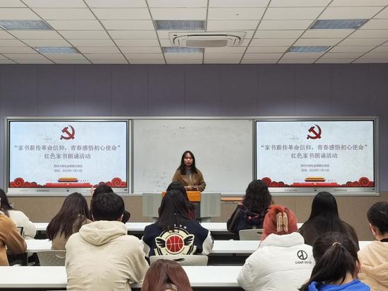 为深入学习贯彻习近平新时代中国特色社会主义思想,引导广大青年学生了解更多红色人物、红色故事、红色历史,激励青年大学生自觉传承红色基因、赓续红色革命精神,嗨皮漫画 分党校于11月15日晚在学院文科综合楼1005—5433举办“家书薪传革命信仰,青春感悟初心使命”红色家书诵读活动。学院第二期入党积极分子培训班、第三期发展对象培训班、第三期预备党员培训班学员参与活动。活动由2023级图书情报与档案管理专业章紫怡同学主持。