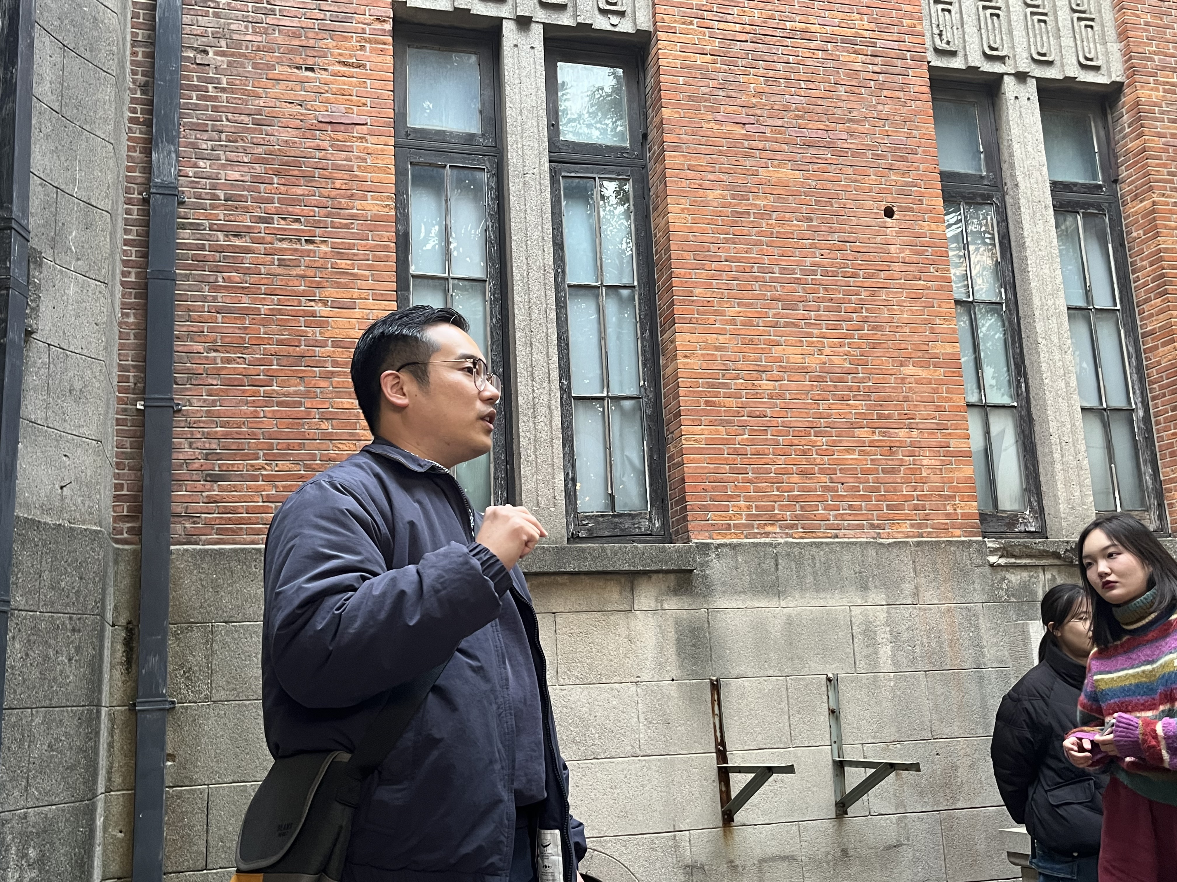 之后同学们乘车来到苏州关税务司署旧址,此地由缪晓婉同学向同学们介绍。1896年苏州海关正式开关。为了处理相关事务,清政府于苏州葑门外觅渡桥西建立了海关税务司署,税务司负责办理报关、纳税及查禁走私业务,此外还需负责征收苏州、淞沪两处厘金,关税事务司成为了苏州与世界连接的窗口。不过如今其旧址也仅留下几栋小楼作为历史的余音。