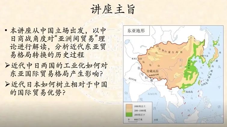 张老师首先解释讲座主旨,即欲从中国立场出发,以“亚洲间贸易”理论解读中日国际贸易力量的消长,进而呈现近代东亚贸易格局发生逆转的历史过程。并提示听众留意两个与此相关的重要问题: