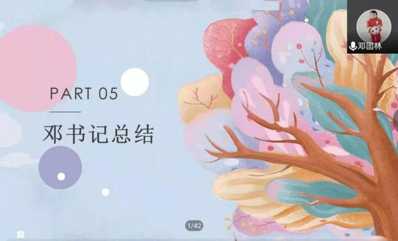 最后,邓国林书记作总结发言。邓书记在高度肯定本次阅读书刊分享会的同时,鼓励大家多读书,会读书,读好书。他首先指出书籍是人类进步的阶梯,青年人尤其是学生要多读书,鼓励大家要读《孙子兵法》等中外名著。其次,他表示读书要做笔记,更要在实践中将知识内化于心,外化于行。除此之外,邓书记还借用习近平总书记的话语激励同学们在百年大变局的背景下,立足民族复兴,练就过硬本领,锤炼品德修为,鼓励大家积极参加疫情防控志愿活动。