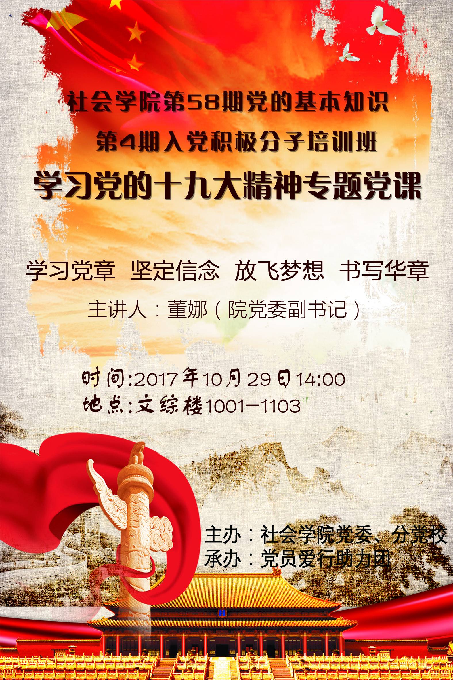 分党校通知:学习党的十九大精神专题党课(海报)