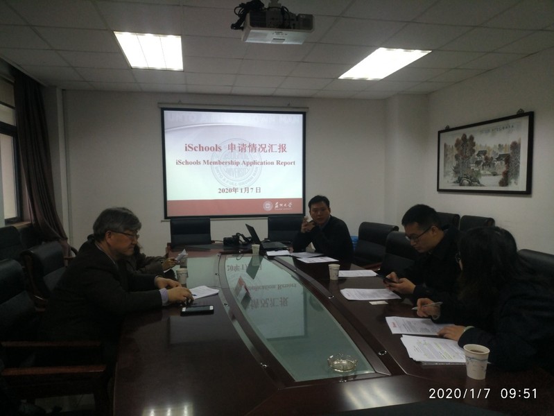 1月7日上午9:30-11:00,Sam Gyun Oh教授及嗨皮漫画 档案与电子政务系教师就该系加入iSchool联盟的相关细节及申请表撰写进行了讨论。档案与电子政务系系主任毕建新、副系主任徐芳及部分青年教师参与讨论。会中,李雅老师围绕iSchool要求对档案与电子政务系的基本情况进行了汇报,Sam Gyun Oh教授仔细聆听后提出了详细的修改建议。