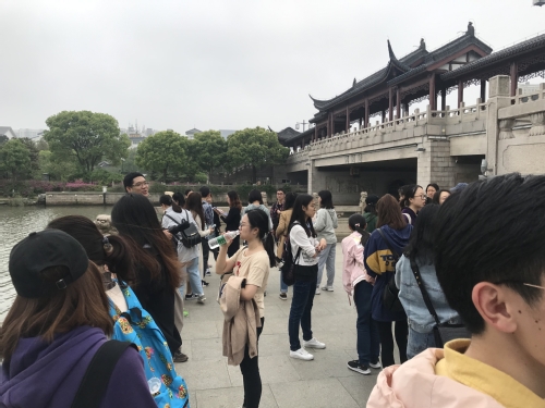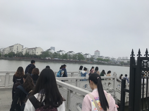在早上八点前,同学们早早在苏州相门集合等待活动开展。在袁老师清点完人数,工作人员讲解完步道路线和注意事项后,活动正式开展。本次活动的行走路线是相门桥-南园桥-人民桥-吴门桥-干将桥,全长将近8公里。在工作人员的带领下,同学们兴致勃勃的出发了。踏上步道,和煦的河风吹拂而来,让人倍感清爽。沿着河边步道行进,同学们和老师就各种学业问题,社会问题交流想法,分享见解。