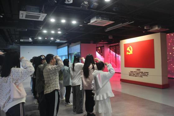 走进“青春誓言”宣誓区,全体预备党员在讲解员的带领下,面向党旗,重温入党誓词。誓词句句千钧,每一个字都深刻地印在了学员们的脑海中,进一步坚定了学员们的入党初心,筑牢了忠诚信念。