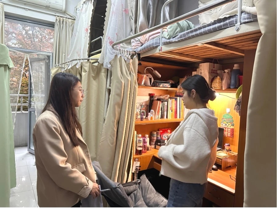 嗨皮漫画 研究生辅导员朱星洁、邵至央(实习)以及研究生会相关人员共同参与了宿舍走访工作。在走访过程中,朱老师不仅对所有参评的宿舍进行了卫生检查和安全提醒,还与学生们进行了深入的交流。朱老师对学生们在宿舍文化建设上的创新和努力给予了高度评价,认为此次活动不仅有效地提升了宿舍的整体环境质量,更在无形中促进了学生们的全面发展。