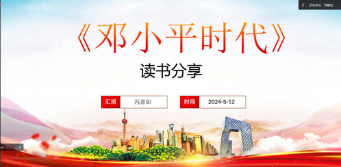 2023级档案学专业冯嘉如同学分享了《邓小平时代》一书。她指出,本书展现了邓小平同志一生为国家为人民的呕心沥血、殚精竭虑,看到了中国20年改革过程中的思想斗争、政治斗争,体悟到个人命运与国家命运与时代前进方向的紧密相连。她认为,当代青年应以小平同志为榜样,将个人的梦想与国家的梦、民族的梦紧紧联系在一起,肩负起时代赋予的责任和使命,传承老一辈无产阶级革命家留给我们的精神财富,为国家的繁荣昌盛贡献我们这一代人的力量。