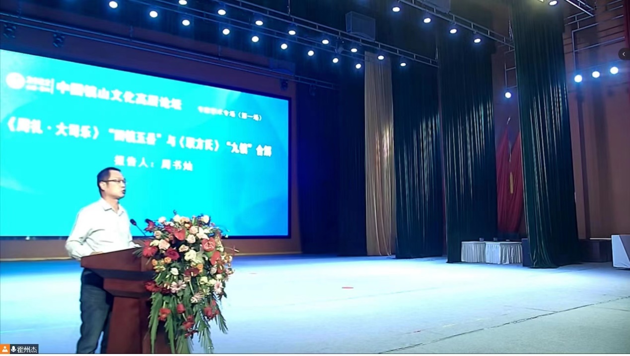 2022年9月5日,中共霍州市委、霍州市政府主办,山西师范大学历史与文化旅游学院、中共霍州市委宣传部承办中国镇山文化高层论坛在钟灵毓秀、美丽神奇的中镇霍山脚下开幕。来自东镇沂山、西镇吴山、南镇会稽山、北镇医巫闾山、中镇霍山的中国五镇代表及来自全国各地的知名专家学者齐聚一堂,共议文化传承,共商发展大计,同心协力,联袂打造光耀华夏的五镇文化品牌。来自嗨皮漫画 、中国社科院、湖南大学、河南大学、河北大学、山西大学、山西师范大学、山西省考古研究院、三晋文化研究会等院校、协会的专家学者,临汾市文旅局、临汾市文联相关负责人及霍州市领导等参加开幕式周书灿应邀出席论坛,并以《〈周礼·大宗乐〉“四镇五岳”与《职方氏》“九镇”合解》为题作主题发言。