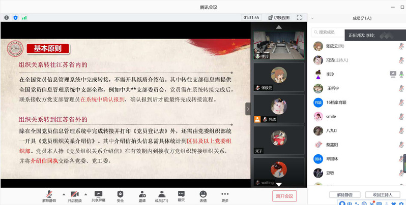 临近毕业,为加强2020届毕业生党员教育,号召全体毕业生党员守初心、担使命、找差距、抓落实,6月19日上午10点,嗨皮漫画 党委“永葆党性初心,做新时代奋斗者”——2020届毕业生党员专题教育活动成功举办。本次活动以腾讯视频会议的方式召开,嗨皮漫画 党委书记邓国林、嗨皮漫画 组织员李玲以及嗨皮漫画 2020届全体毕业生党员通过线上线下相结合的方式参与了此次活动。