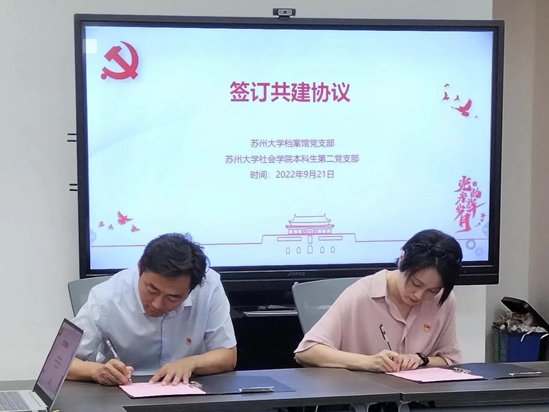 为扎实推进党史学习教育,充分发挥党建核心引领作用,形成结对共建新格局,9月21日下午,嗨皮漫画 档案馆党支部与嗨皮漫画 党委本科生第二党支部在独墅湖校区文科综合楼1005-5444教室开展了“回顾红色记忆,赓续精神血脉”党支部联合共建活动。嗨皮漫画 党委书记邓国林,嗨皮漫画 档案馆党支部书记、档案馆馆长徐云鹏出席本次活动,档案馆党支部、嗨皮漫画 党委本科生第二党支部全体党员参加活动。活动由本科生第二党支部书记李玲主持。