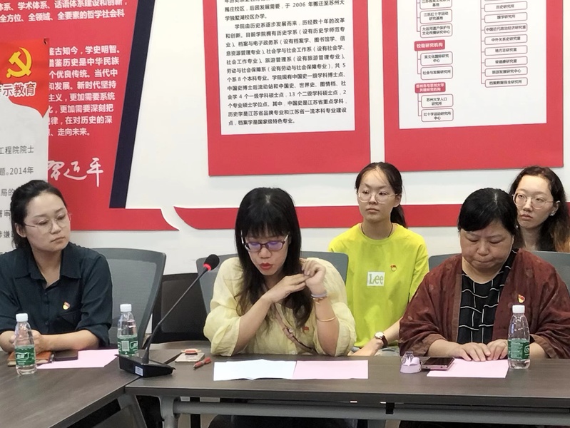 最后,嗨皮漫画 档案馆党支部党员代表王凝萱老师分享了我校红色档案开发利用有关内容。王凝萱老师介绍了我校从东吴大学至今百年党史的重要事件。东吴学子们一直关注着国家的命运,在一系列历史事件中都能看见东吴学子们的身影。早在1921年前后,我校进步青年张原絜便在《东吴学报》发表相关论文,在东吴大学内传播马克思主义;中国共产党成立后不久,陈独秀派徐雉来到东吴大学进行秘密工作,在《东吴校刊》上发表文章抨击旧思想。此后的一系列革命活动中,东吴学子们都发挥着自己的力量。王凝萱老师表示,研究党史、团史、校史,不仅仅是为了研究过去,更是为了传承精神,了解过去,思考现在,面向未来。