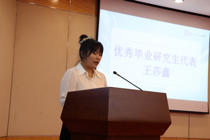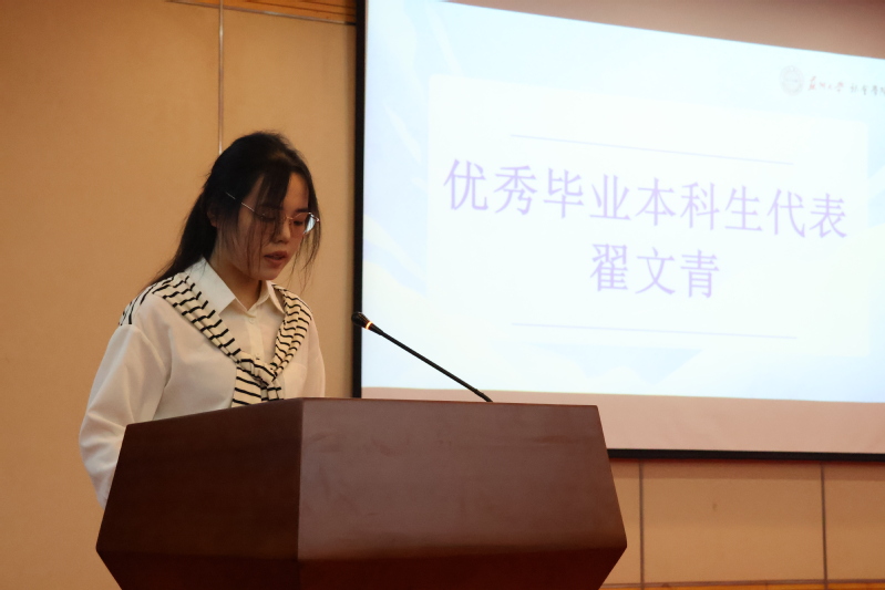 在代表发言后,学院向优秀毕业生代表颁发荣誉证书并赠送毕业礼物,为他们献上美好的祝福。