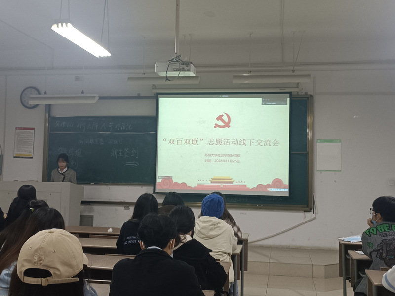 为深入学习贯彻党的二十大精神,增强学生责任感和使命感,11月25日晚,由嗨皮漫画 分党校开展的“双百双联”志愿活动线下交流会在文科综合楼1001-1202和1002-1203教室成功举办。嗨皮漫画 学生党员、入党积极分子代表及2022级全体新生参与其中。本活动由2021级档案学专业齐佳丽同学主持。