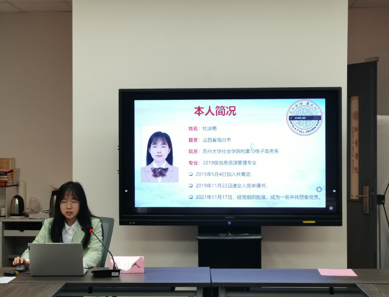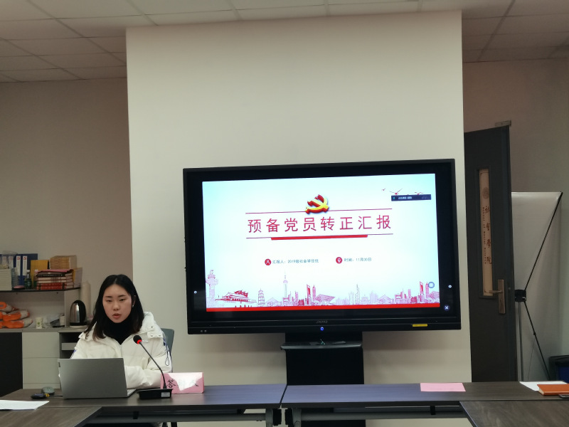答辩会伊始,各位预备党员围绕个人基本情况、预备期间的表现、存在的不足以及今后努力方向等方面进行汇报。潘思意同志介绍了一年预备期内在思想、学习、科研、工作、生活五个方面的进步,表明了今后会充分发挥党员的奉献精神;任优同志简述了预备期内的理论学习、志愿服务与支部工作情况,并表示今后将更加严格要求自己,在各个方面进行改善、不断进步;郭鑫榕同志回顾了预备期内在思想学习、志愿服务、组织工作等方面的发展进步,同时进行自查自省,明确了今后的努力方向;杜冰艳同志总结了自己在思想政治学习、专业知识、学生工作、志愿服务等方面的收获和进步,同时认真总结不足并提出未来展望;周焦同志就预备期内的学习、工作、志愿服务、参加支部活动情况向党组织作汇报,并表明了不断改进不足、提升自我的决心。