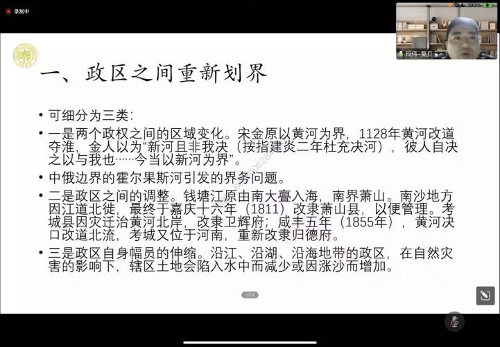 基于以上历史政治地理对自然灾害的响应方式四种类型的分析,段伟老师在讲座最后做出了总结。纵观中国历史,自然灾害影响历史政治地理的案例非常普遍,其中地名更改由于实际作用不大,次数相对较少,而具有较强破坏力的水灾、地震及沙漠化通过改变地貌,影响人口与赋税,进而对政区变化产生巨大作用。此外,段伟老师指出我们应该认识到政治地理的变动是一门高超的学问,牵一发而动全身,从历史上看,不是每次政区调整都有益于地方管理,有的反而造成政区之间相互争夺利益、相互掣肘的情况,并不利于对自然灾害的治理和防范,因而有时尽管发生严重自然灾害,但政区没有发生变动,有其深层因素的充分衡量。面对自然灾害严重程度与历史政治地理是否变动不对等的情况,我们更应该注意到其背后有更多更复杂的因素发挥作用,需要进一步地分析与研究。